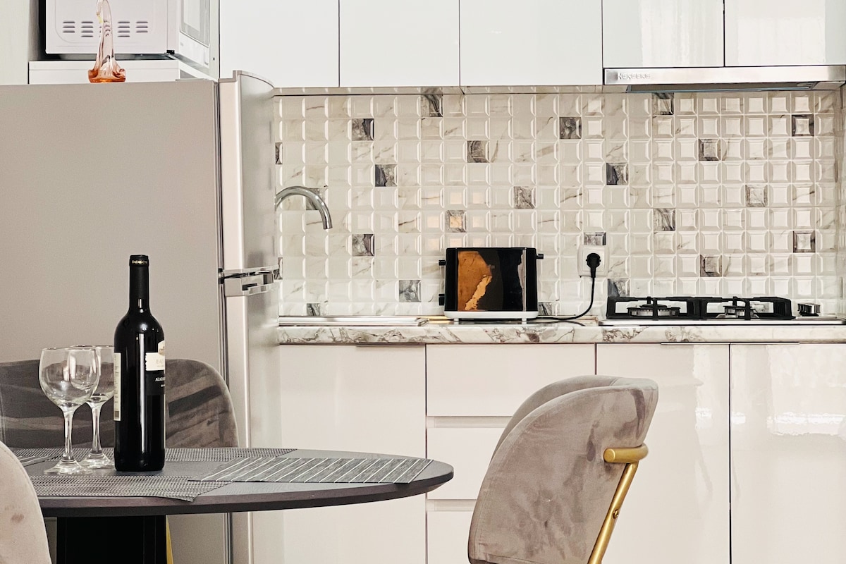 Comfortable, cozy and bright apartment. The apartment is equipped with all necessary modern amenities. Just have a rest, drink delicious coffee, work, walk around and spend wonderful time. Nearby there is almost everything for your needs. Fulfill your vacation with tasty Georgian cuisine, wine and magical landscapes. Welcome CLOSE TO APARTMENT: Hypermarket Fresco, parks, Magti for sim , pharmacies, cafes, restaurants Bus stops Taxi ✈ AVAILABLE TRANSFER SERVICE - Airport < - > Apartment, Trips