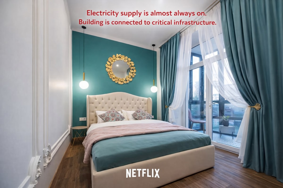 ✨ A energia/luz de reserva está sempre disponível: o apartamento tem uma estação de carregamento potente EcoFlow DELTA 2 Max (2400 W, 2048 Wh). Assim, mesmo durante falhas de energia, terá luz e a capacidade de carregar os seus gadgets. O abrigo está localizado no nosso edifício no piso de baixo. Não precisa de sair do prédio. Há água corrente e aquecimento. Também deixamos aquecedores adicionais nos armários para seu conforto. Reserve agora enquanto a sua data ainda está disponível :)