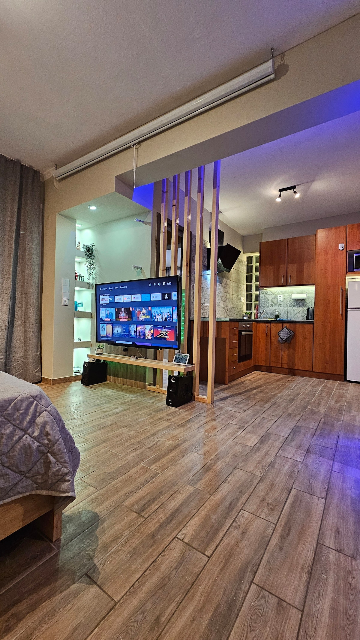 Um estúdio muito confortável e acolhedor no 6º andar de um edifício típico dos anos 60... O edifício está localizado em Fok.Negris,uma rua pedonal ampla e verde na zona de Kypseli. A casa tem um terraço sudeste com belas vistas de Lycabettus e da Acrópole com uma área de estar ao ar livre, toldos e muitas plantas verdes e está localizada na frente do edifício. Está totalmente e devidamente equipado para 1 ou 2 pessoas com um sofá/cama de casal confortável e anatómica.