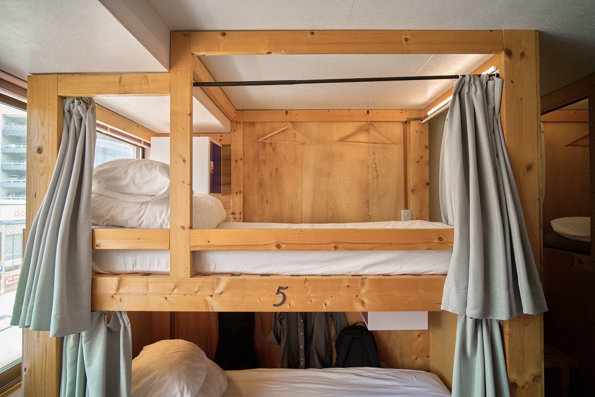Este é um quarto partilhado num dormitório misto da ●casa de hóspedes.1 cama em 2 beliches. A 25 minutos a pé da estação de ●Tsurusaki. ●-Estacionamento gratuito.(5 carros, 5 motas e 3 bicicletas) A 5 minutos a pé de uma ● loja de conveniência, lavandaria a moedas, restaurantes, lojas de bento e cafés. ● Ar condicionado, cacifos, luzes LED, carregamento USB e tomadas.Há uma cortina de cama privada. As fontes termais naturais estão ●nas proximidades. Pode desfrutar de andar de bicicleta com uma bicicleta de aluguer ●gratuita. ●Peixe fresco e saboroso.As marcas de peixe "Seki Aji" e "Sekisaka" são famosas. Convenientemente perto do ●ferry para acesso a Shikoku e Kansai. Pode ir para Fukuoka, Kumamoto, Miyazaki e Kagoshima a partir de ●Oita. Pode fazer uma viagem de um dia a ●Beppu e Yufuin. ●Há uma cúpula de futebol e artes marciais nas proximidades, tornando-o conveniente para assistir a desportos.(20 minutos de carro)