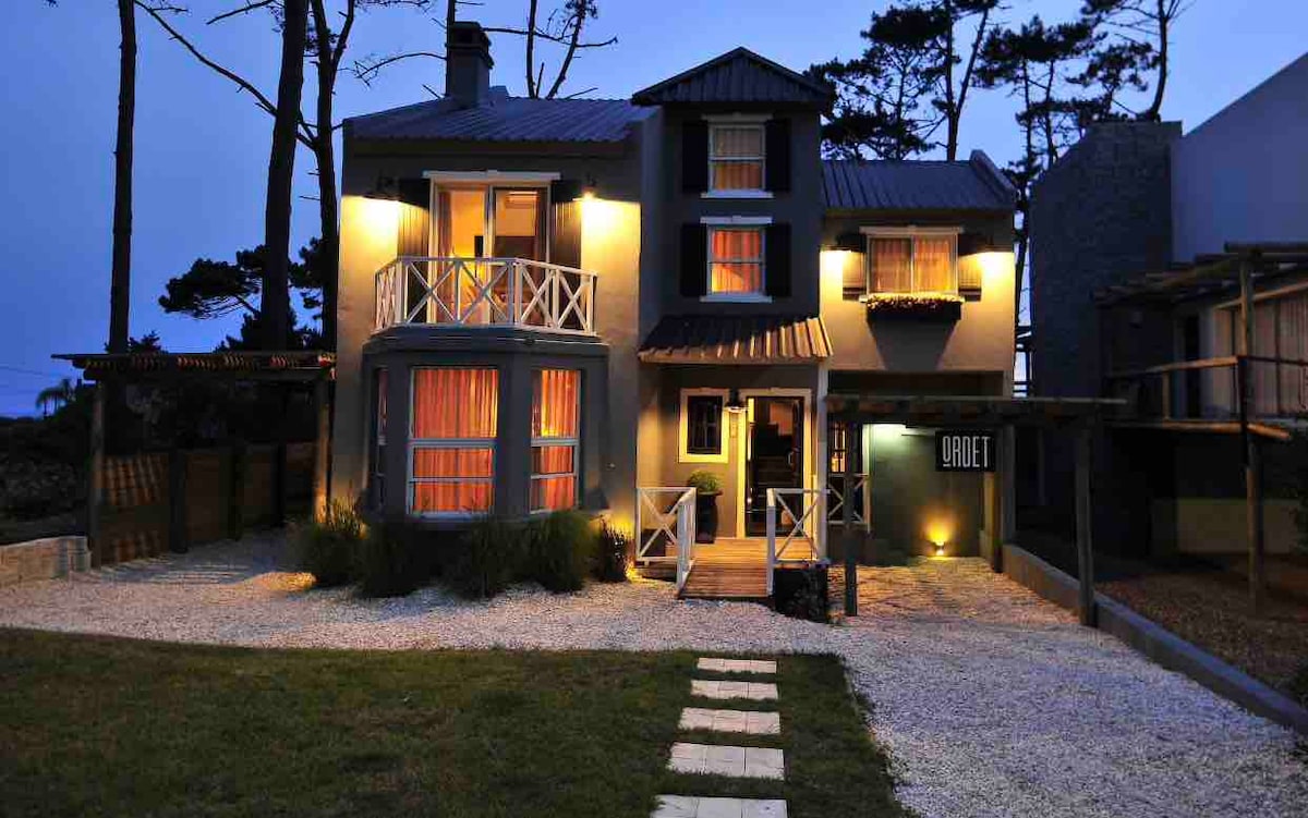 Desfrute do cenário encantador deste local único na natureza. Construída em eucalipto e vidro, esta minúscula casa é para desfrutar da floresta, dos pássaros, das flores e da tranquilidade. Localizado a uma curta distância a pé da praia (Praia Montoya e Praia La posta del Cangrejo) e do acolhedor centro de La Barra, este espaço parece distante, mas não é. Uma cama queen, uma kitchenette, uma casa de banho completa e uma sala de estar confortável é o que encontrará ao chegar a este loft. Não se arrependerá desta experiência!