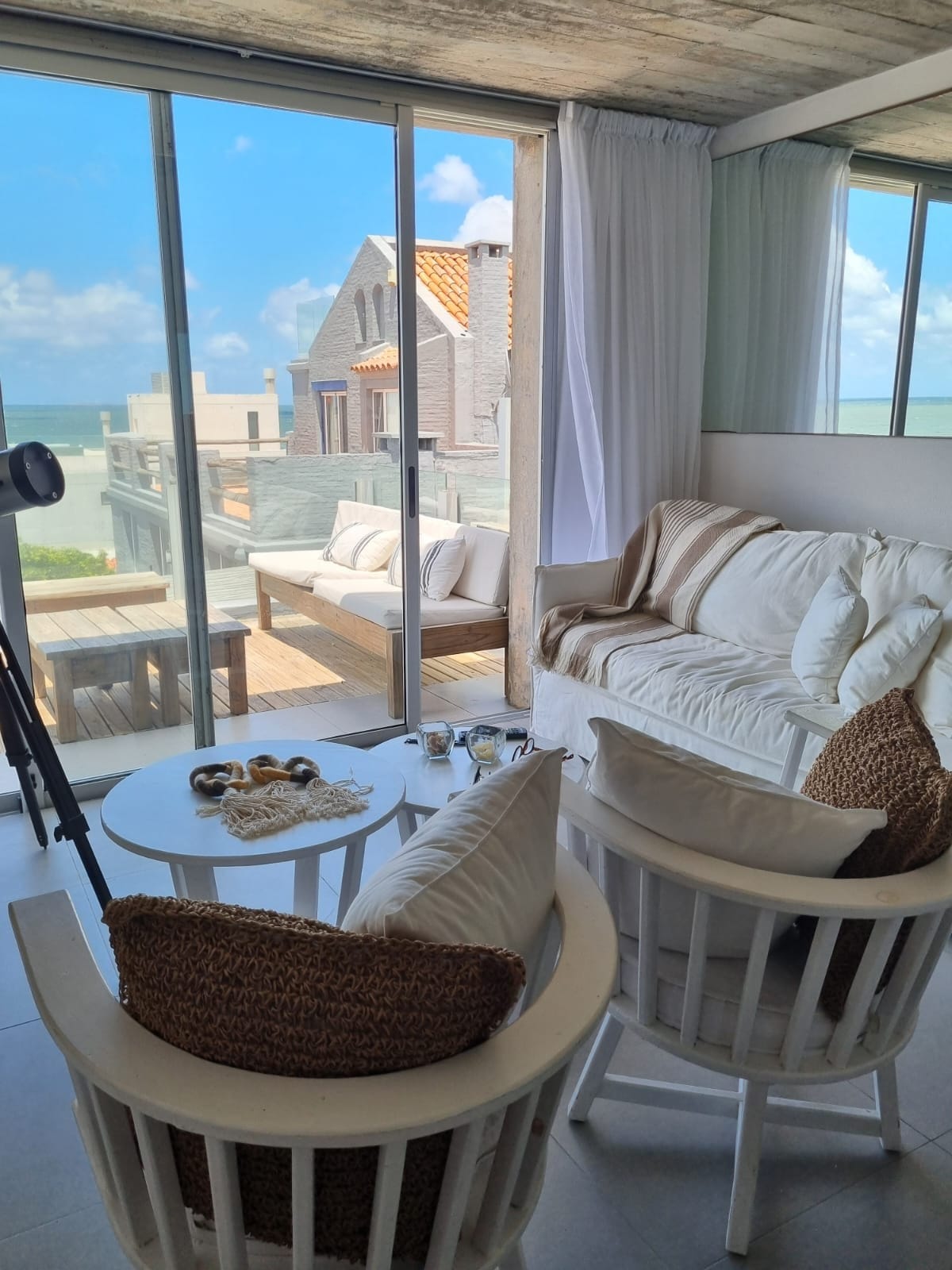 Complexo Terrazas de Manantiales, Edifício de 2 andares localizado na primeira linha à beira-mar, pioneiro na região. Nossa unidade tem um grande terraço na praia com uma vista única e entrada independente. Comodidades: - serviço de praia (guarda-sóis, cadeiras e espreguiçadeiras) -salva-vidas -segurança 24 horas -serviço de limpeza -recepção e serviço de manutenção -garagem coberta fixa -lavanderia -academia -piscina