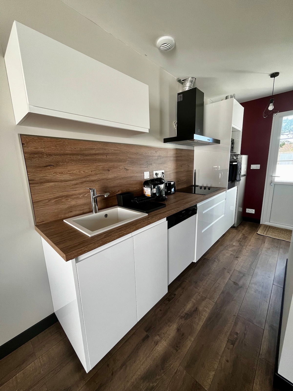 maison de 85m2 colorée fonctionnelle et agréable jardin et parking de 300m2 petit jardin potager (fraisiers framboisiers tomates) abri de jardin de 5m2 avec ratelier 3 emplacements pour vélos dressing et garage non accessible aux locataires plage à 300m à pied restaurants sur le port du Douhet à 800m Marché de la Brée les bains à 1,5 Km (tous les jours du 15 juin au 15 septembre) Nombreuses animations le soir durant l'été Piste cyclable accessible en face de la maison