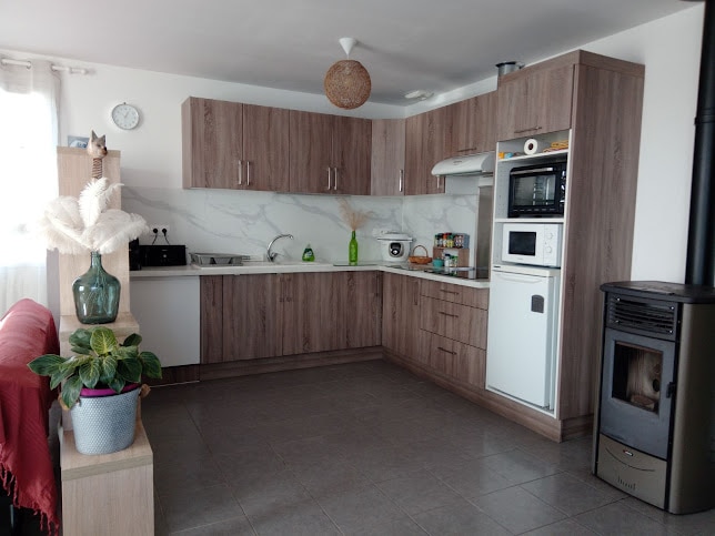 Esta casa geminada, reformada em 2020, para 1 ou 2 pessoas: - Térreo com cozinha, sala de estar com TV e sofá, banheiro - Sótão: * banheiro com pia, chuveiro, vaso sanitário e espaço de armazenamento * quarto de 16 m² (cama de 140 x 190) com grande armário e ventilador (no verão).