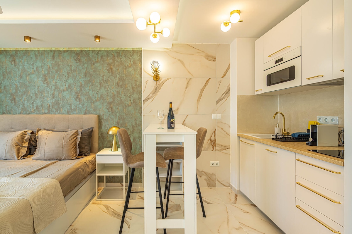 Desfrute do conforto e do sol no nosso Mint Studio com uma disposição em plano aberto, localizado no popular complexo de Castle Harbour, em Los Cristianos. ✨ Terraço ensolarado com vista para a piscina • Receção 24 horas por dia, 7 dias por semana ★„O apartamento é tal como nas fotos, muito limpo, decorado com bom gosto.“ 🌞 Por que vai adorar o nosso estúdio: ✅ Terraço privado ensolarado: sol a maior parte do dia com duas espreguiçadeiras ✅ Cama king - durma com conforto ✅ Piscina aquecida - Durante todo o ano ✅ Estacionamento: gratuito no complexo ou na rua próxima ✅ Zona de cozinha - Cozinha compacta