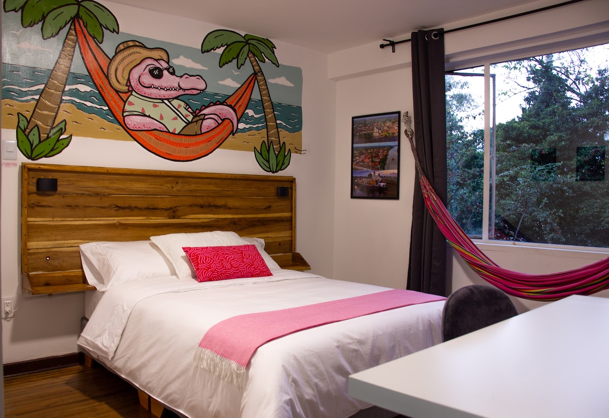 Espaço acolhedor e independente com tudo o que precisa. Internet de alta velocidade, 62 Mbps. Cama confortável, kitchenette bem equipada, mesmo com o básico para cozinhar por alguns dias, café, açúcar, sal, óleo. Excelente ligação à Internet, TV por cabo, máquina de lavar roupa, luz natural. Muito perto da mercearia e do Transmilenio. Temos todo o gosto em ajudar com qualquer dúvida. Não são permitidos animais de estimação.