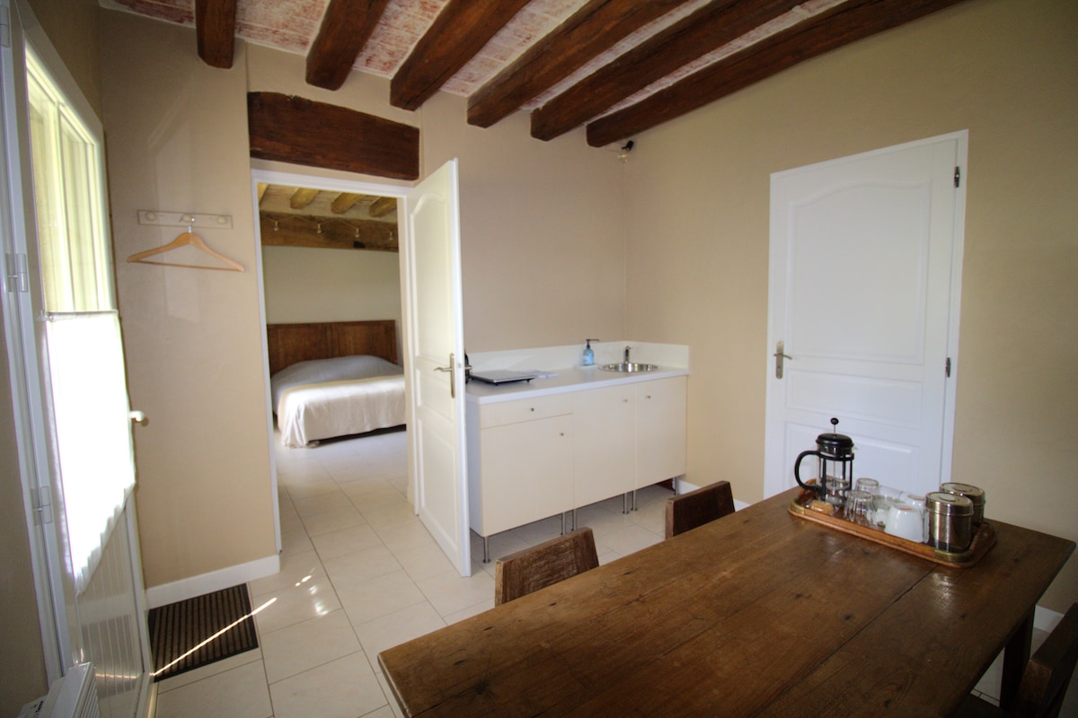 Situada nas dependências de uma elegante casa de carácter, esta suíte independente, renovada com paixão, oferece um refúgio romântico ideal para uma escapadela a dois. Deixe-se encantar pelo charme autêntico do local e pelo conforto moderno deste espaço acolhedor, pensado para momentos de cumplicidade e relaxamento. Pode reservar um pequeno-almoço especial para desfrutar a dois (mediante pedido).
