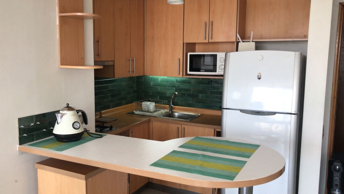 Relaxe neste espaço tranquilo e elegante. Apartamento tipo estúdio, com todas as comodidades necessárias para tornar a sua estadia em Santiago um momento único. Com muito boa conectividade, fica a poucos passos do metrô Salvador, com um parque, clínicas, setor de restaurantes à mão. Tem vista desobstruída para o Cerro San Cristobal do 3º andar, um lugar icônico da capital. Também tem ar condicionado frio e quente para tornar a sua estadia mais agradável.