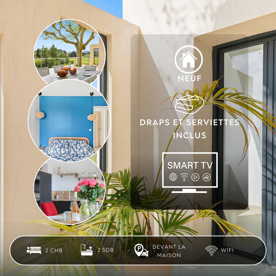 Entre a terra e o mar, moradia climatizada de 95 m², sem vizinhos, com piscina privativa exclusiva para os inquilinos. Conexão Wi-Fi (fibra), TV, Netflix. Estacionamento privativo: possibilidade de estacionar dois veículos. Grande sala de estar, cozinha equipada aberta para a sala de estar. Dois quartos com camas de casal. Um banheiro com banheira. Idealmente localizado, perto das praias de Hyeres (15 minutos), La Londe les Maures (15 minutos), Bormes/Le Lavandou (25-30 minutos), St Tropez (1 hora)...