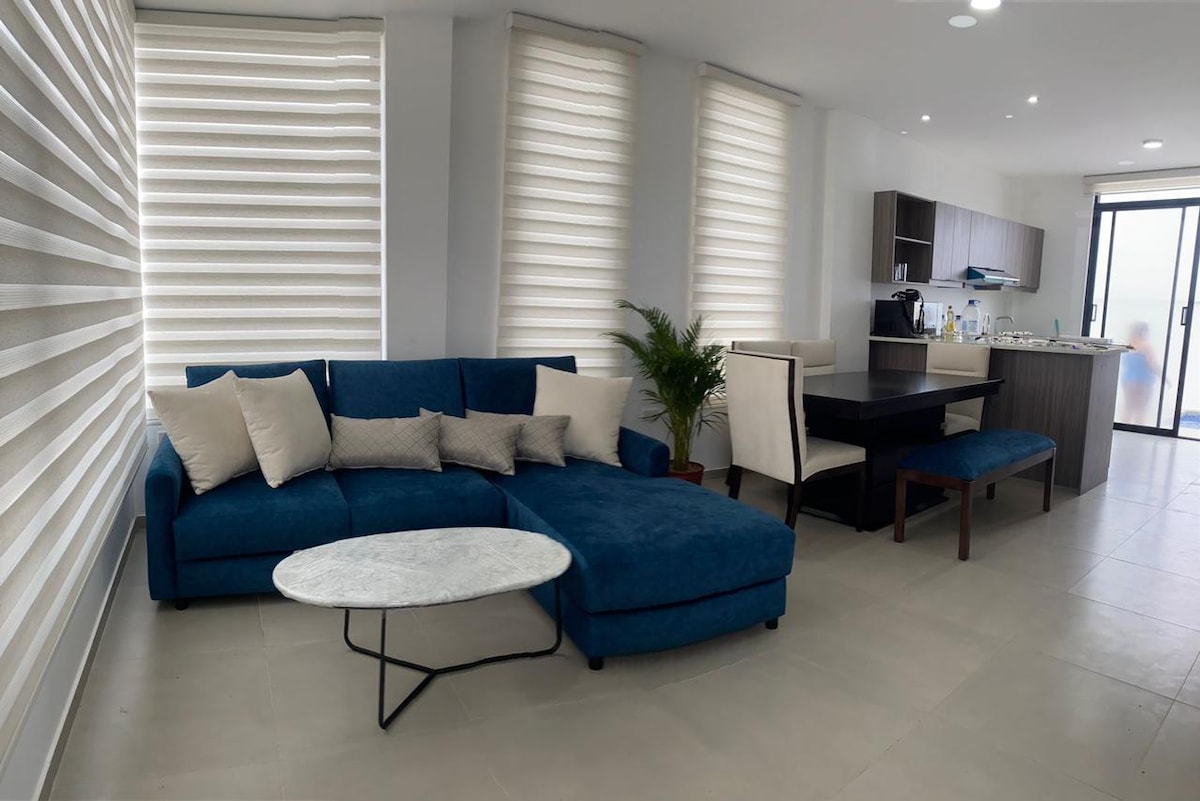 El departamento ideal frente al mar en Manta. Disfruta de un espacio moderno en Umiña–Barbasquillo con todo lo que necesitas: 🍳 Cocina equipada + utensilios 🧺 Amplios closets 🛁 2 baños completos 🛏 2 camas + sofá cama 🌅 Piscina con vista al océano 🐶 Pet friendly. Comparte con familia, pareja y amigos, y vive una experiencia inolvidable Ubicado a minutos de la playa, restaurantes y supermercados. Reserva ahora tu estadía perfecta.