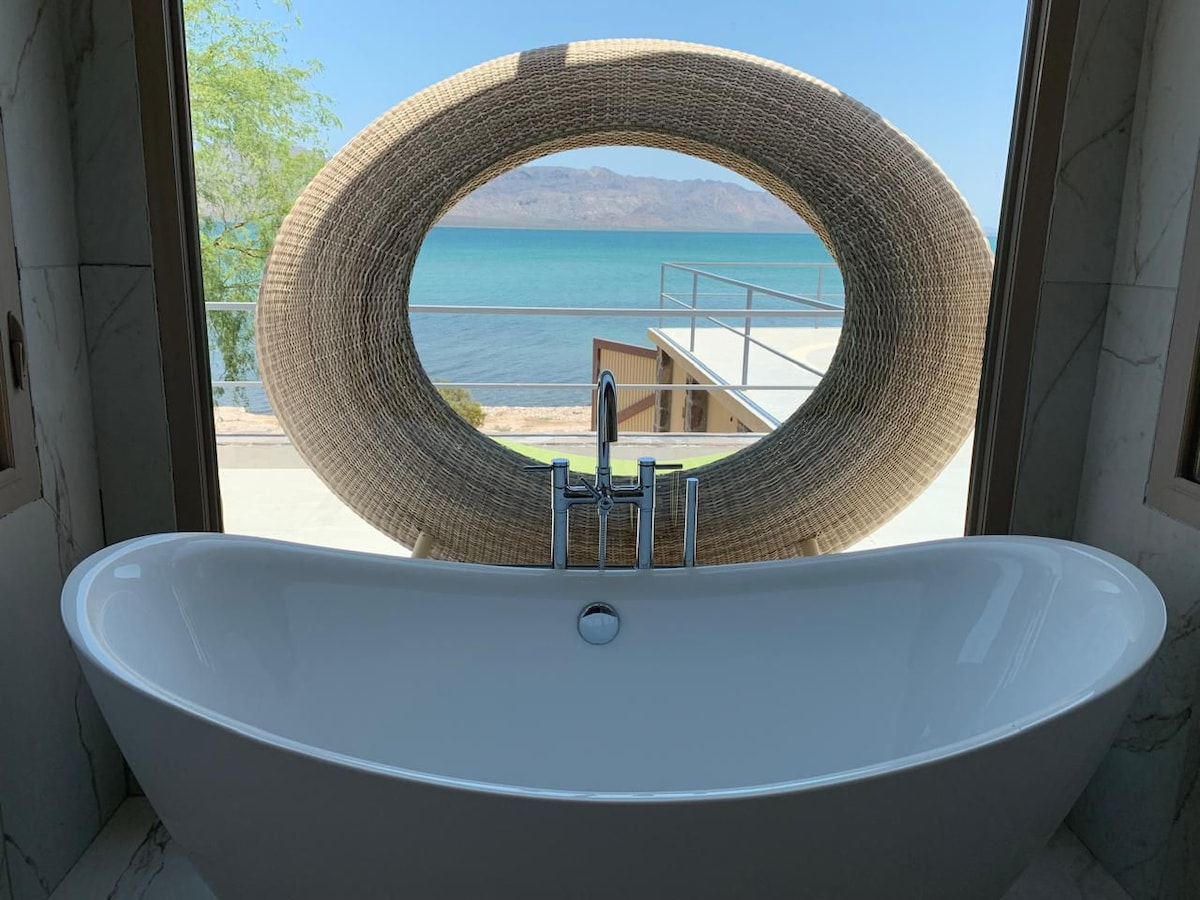 Situada na montanha, a casa na colina com cama king size tem três grandes janelas e um terraço com vista para o vale do deserto e o Parque Marinho Nacional. A casa está localizada no final de uma estrada que contribui para o carácter tranquilo e silencioso de Cabo Pulmo, mas está suficientemente perto e a 10 minutos a pé de lojas de mergulho, restaurantes e trilhos para caminhadas. Esta unidade tem Starlink. A casa não está preparada para festas, música alta e crianças com menos de 12 anos. O estacionamento é no local.