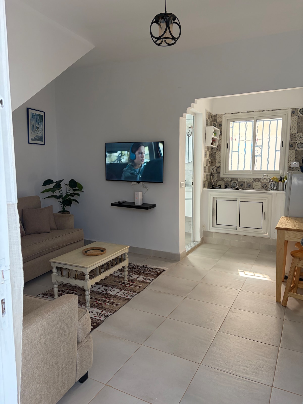 charmant appt, dans une rue piétonne calme, à 3 minutes de marche de la station du train Sidi Bou Said, à 5 minutes à pied du village , à 8 mn de la plage, 13 km de l'aéroport de Tunis Carthage et à 30 minutes (en train) de la Médina au centre de Tunis . - Cuisine équipée - Salle d'eau avec douche - Climatisation - Chauffage - forte connexion wifi illimité - Télé écran plat - Serviettes et draps fournis ( check-in entre 15h et 22h Max )