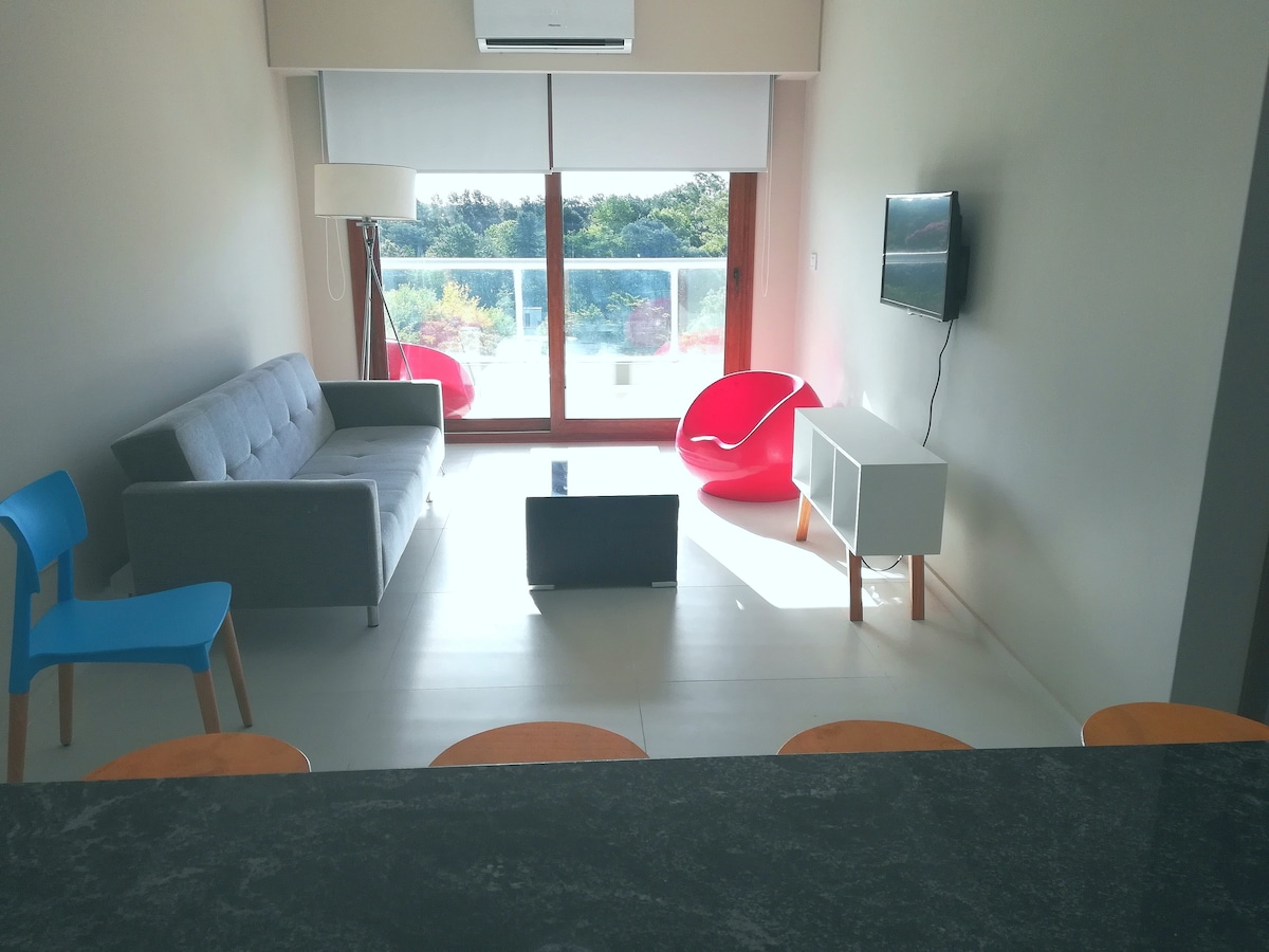 Relaxe neste espaço muito tranquilo e elegante. Novo edifício Canning Park, apartamento de 2 quartos equipado com novo perto de tudo e cercado pela natureza, mas com lojas a pé, a apenas 20 minutos do aeroporto internacional de Ezeiza. Tem um grande parque arborizado de 5000 metros, piscina, garagens e grande parque.