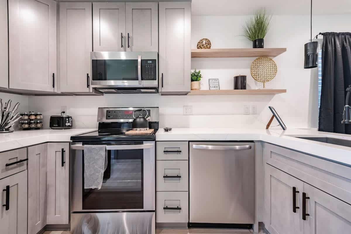 Arrendamentos totalmente mobilados incluem uma cozinha e as comodidades de que precisa para viver confortavelmente durante um mês ou mais. É a alternativa perfeita a uma sublocação.
