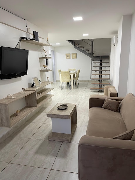 Excelente localização no centro, a três quarteirões da praça principal, com posto de gasolina na frente e lojas de todos os tipos nas proximidades. O ambiente é totalmente seguro com câmeras de segurança e atendimento de porteiro. Apartamento decorado e mobiliado novo, com tudo o que você precisa para uma estadia ideal, confortável e agradável. Possui duas TVs de 40 polegadas e dois ar-condicionados split na sala de estar e no quarto.