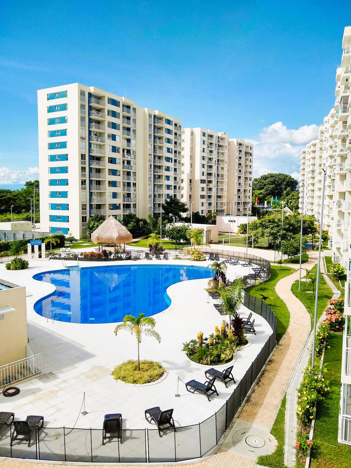 Hermoso apartamento en PEÑAZUL LA MORADA, para descansar y disfrutar en familia, WIFI y las mejores piscinas, (3 habitaciones con aire acondicionado, habitación principal con tv, 2 baños, lavadora, BBQ, comedor en mesón y exterior, TV 55” en sala con Cable y Netflix ). Parqueadero para 1 auto dentro de las instalaciones gratis. *4 PISCINAS: familiar, deportiva, niños y párvulos! Piscina con juegos, TOBOGÁN! Único en la zona. Sauna, turco, Jacuzzi 🚨Los MARTES las piscinas NO están disponibles