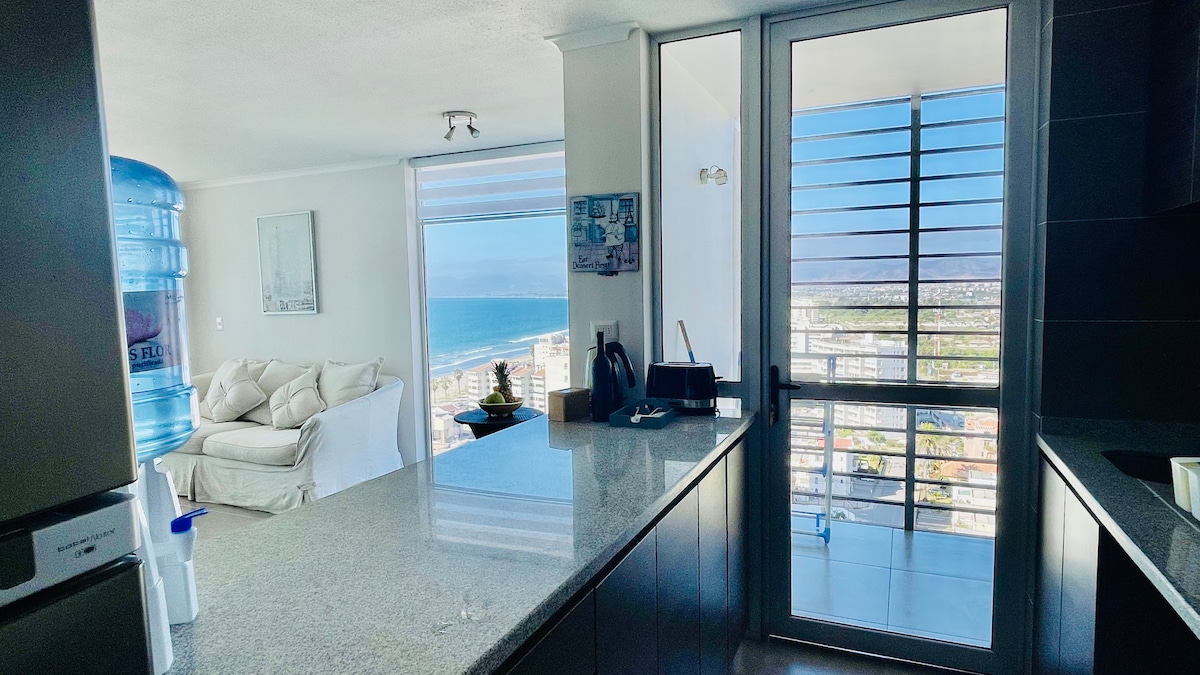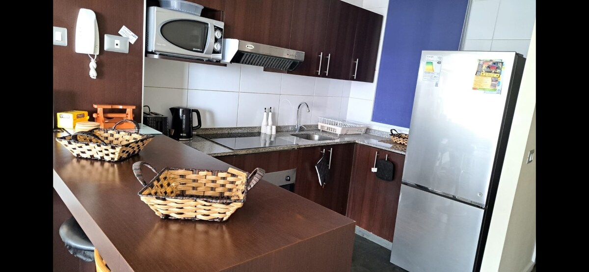 Fuja para o mar com sua família. Em qualquer época do ano, sinta-se em casa. Pôr do sol do terraço, de onde você pode ver toda a baía de Coquimbo e La Serena. À noite, céus claros e estrelados, respirando o ar do mar. Tudo isso de frente para o mar, no 19º andar, para 5 pessoas. Ao lado do cassino Enjoy. Piscina ao ar livre e vista para o infinito. Kinchos com vista panorâmica. Estacionamento gratuito. Saindo do condomínio, avenida costeira