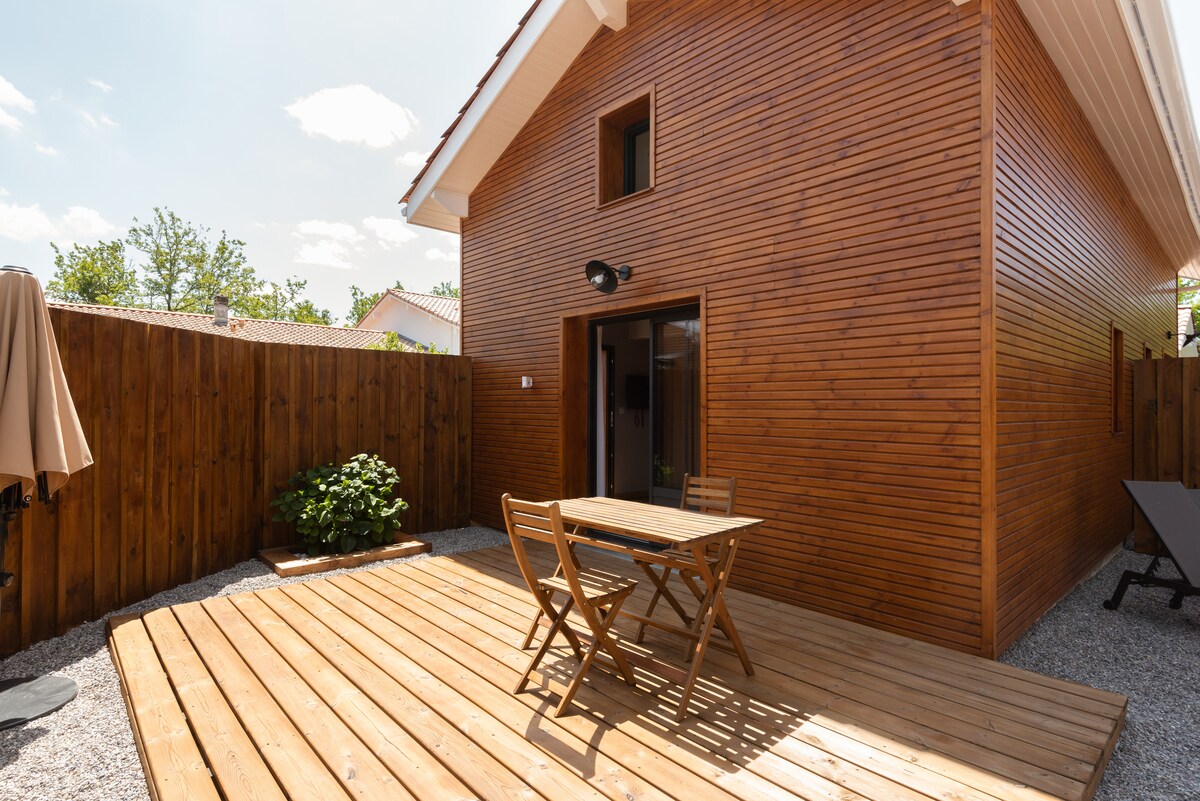 Located in a quiet residential area, "La Brise des Bois" cottage is completely new, tastefully furnished and equipped with quality amenities to ensure you a very comfortable stay. Designed for 2 people, the 35 m² cottage consists of an entrance, a lovely air-conditioned living space with an American kitchen and a seating area opening onto a 40 m² terrace with no overlooking neighbours, featuring a dining and relaxation area, and an air-conditioned bedroom with an adjoining shower room.