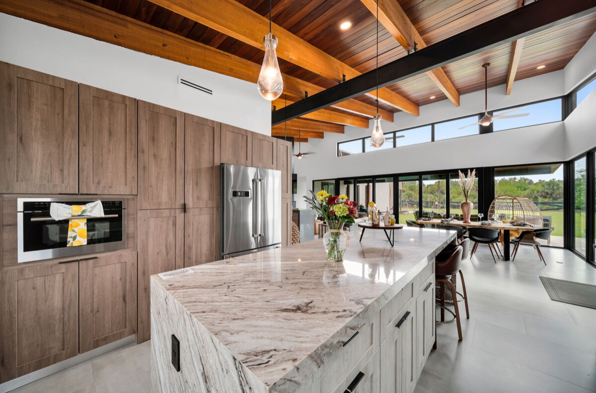 Desfrute com toda a família neste alojamento deslumbrante, luxuoso e moderno em La Belle, com piscina, área de churrasco, fogueira, uma área de piquenique, um canal perfeito para pesca e um campo de basquetebol. Esta casa incrível recebe até 10 hóspedes, pois tem 5 quartos e 5 casas de banho completas. É tranquilo e, ao mesmo tempo, perfeito para reuniões familiares, celebrações e eventos. Perto da The Labelle Brewing Co. e do The Launch no LaBelle Yacht Club. Viva a experiência do campo com estilo!