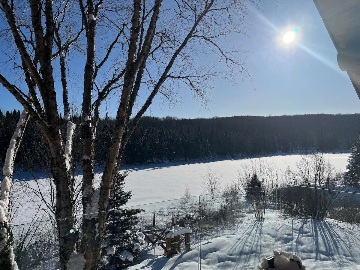 Fuja para a natureza selvagem num ambiente incrível! Nova experiência de spa: Sauna-Douche exterior (maio a outubro)-Spa. O Le Horama é um chalé luxuoso, com acesso direto ao South Missionary Lake. Com a sua vista deslumbrante, permite-lhe fugir do dia a dia, estando localizado a menos de 15 minutos dos serviços; mercearia, farmácia, SAQ, loja de ferragens. Acesso direto a trilhos de mountain bike e snowmobiling, definitivamente vai divertir-se com a família ou amigos!