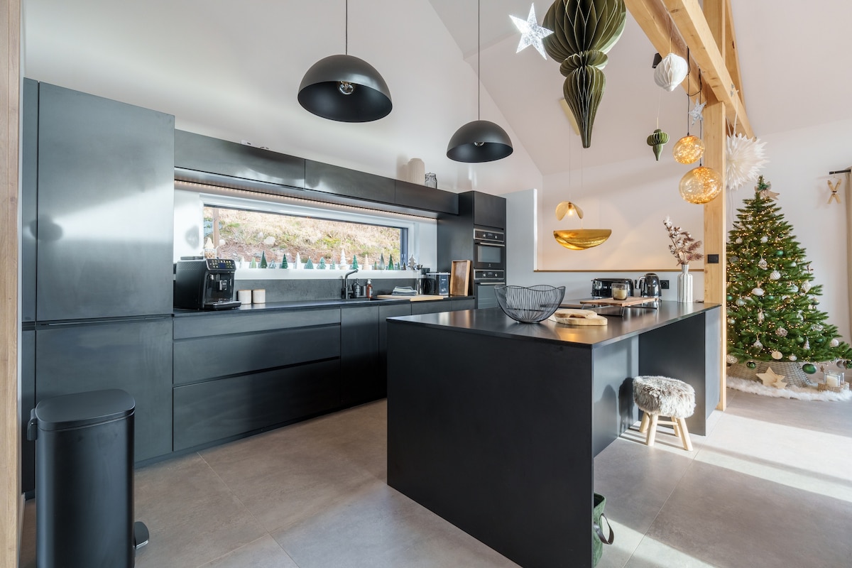 Nossa casa de campo foi construída em 2019. Localizado nas alturas da pérola dos Vosges, você terá todo o tempo para desfrutar da floresta circundante e das muitas trilhas de caminhada ou circuitos de mountain bike. Prestamos especial atenção à atmosfera e à qualidade dos serviços. A decoração é elegante e cheia de charme. Seu terraço oferece uma vista excepcional do lago e das pistas de esqui. Você pode desfrutar de móveis de jardim e espreguiçadeiras.
