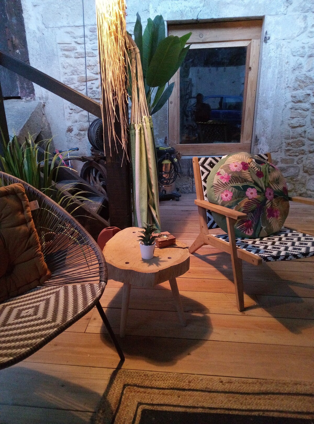 O alojamento está localizado numa antiga quinta que restauro, é um projeto de criação de domínio com eixos como permacultura, apicultura, reconexão consigo mesmo e os fundamentos de uma vida simples, o ambiente é descontraído, acolhedor, em dois níveis, o piso térreo uma sala de estar, kitchenette com a sua área de jantar e no andar de cima um quarto espaçoso com uma casa de banho e sanita separada, um grande terraço de 25 m2 num espaço verde fechado e independente