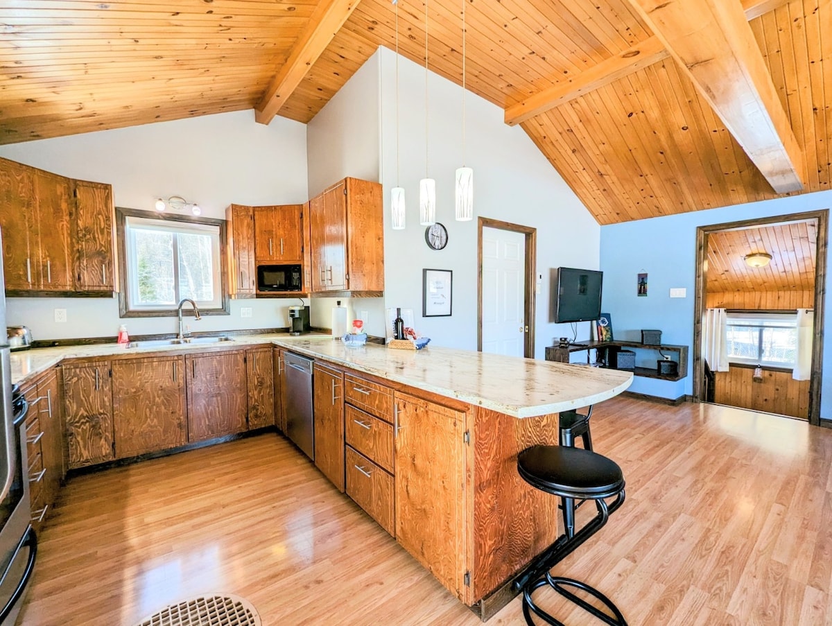 Retiro perfeito na natureza no coração do Laurentian. Descubra esta casa de madeira canadense única construída pela empresa de prestígio local Harkins. Lago de águas claras e pacíficas em frente a esta joia escondida. ♦ Lareira de madeira interna ao lado de sala de estar confortável e TV smart ♦ Dois quartos espaçosos com cama King e Queen Acesso ♦ privativo ao lago natural ♦ Varanda com churrasqueira. Fogueira ♦ Pura intimidade, sem vizinhos próximos ♦ Escrivaninha e Wi-Fi