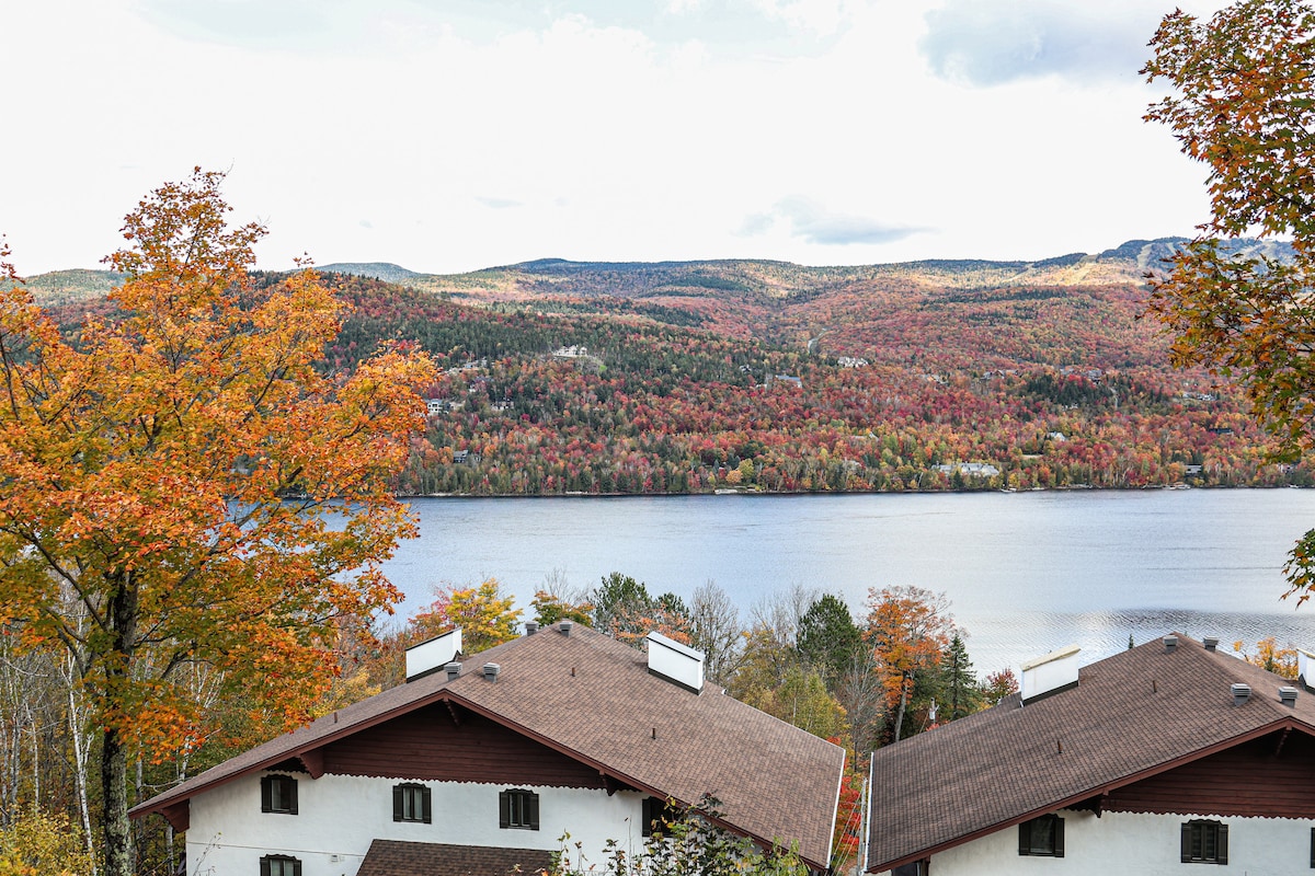 Vista para o lago e para o centro de esqui de Mont-Tremblant.