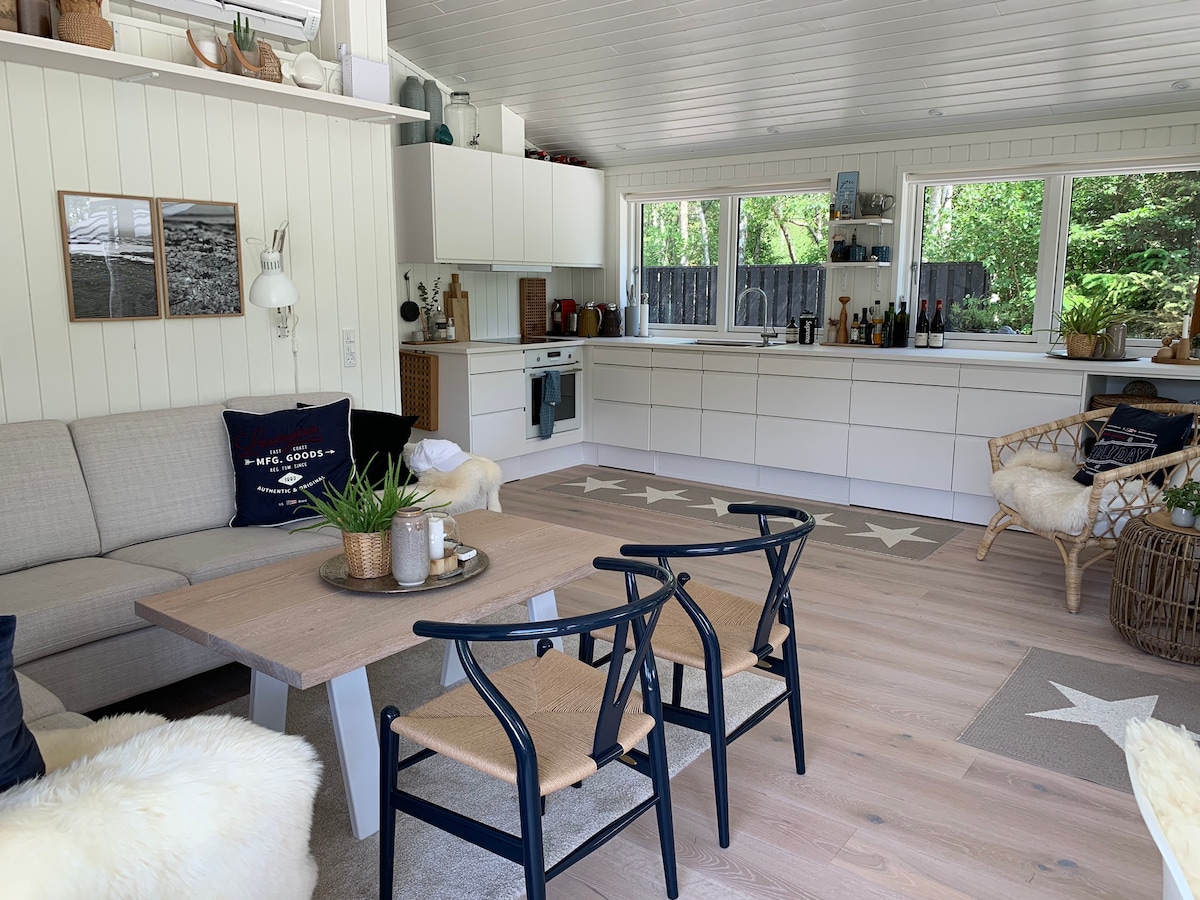 Flot sommerhus i lys nordisk stil, 300 m fra havet