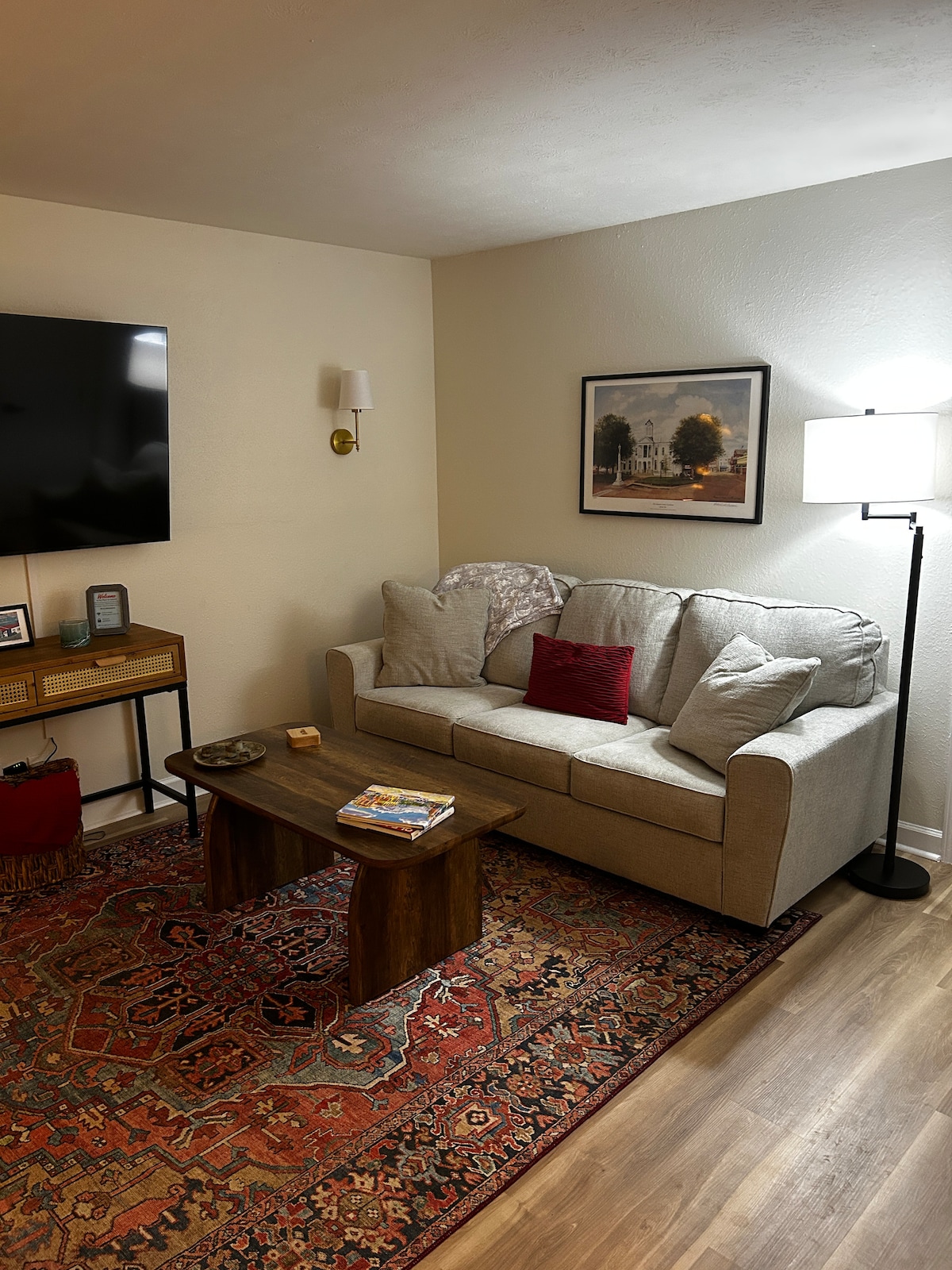 Bem-vindo ao The Square Unit 3, recentemente construído e cuidadosamente projetado para se sentir como uma suite de hotel de luxo, só que melhor. Este refúgio elegante tem capacidade para 4 pessoas e inclui uma cozinha totalmente abastecida, máquina de lavar/secar e estações de carregamento de cabeceira. Todos os detalhes foram considerados para tornar a sua estadia sem esforço. A poucos minutos da praça, desfrute da combinação perfeita de conforto, conveniência e charme do sul. ✽Ole Miss - 2,5 milhas ✽The Square - 3,4 milhas ✽MTrade - 1,4 milhas