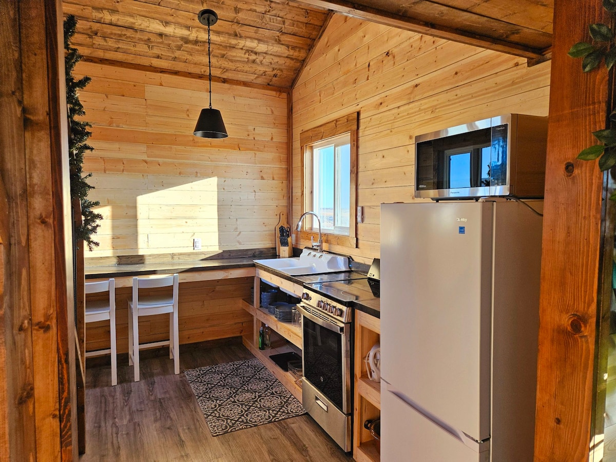Carragana Cottage is located in the country on 40 tranquil acres, just 15 minutes North of Gravelbourg, Sk. Perched on a ridge, Carragana Cottage boasts incredible views, a private 4 season hot tub, a cozy gas fireplace, fully stocked kitchen, plenty of outdoor space to hike, sled & snowshoe, or just sit quietly, watch the wild life and enjoy the fresh country air. With zero light pollution, the starry night sky is definitely something to take in with a comfy blanket & a favorite bevy!