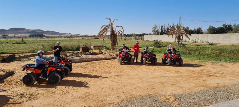 La Maison d’hôtes Houria offre 5 chambres spacieuses (3 lits chacunes, modulables en lits doubles) avec sanitaires privés et douches à l’italienne. Profitez d’une cuisine équipée, d’un hall convivial, d’une piscine avec espace détente, de terrasses, d’une salle polyvalente au décor traditionnel, d’aire de stationnement sécurisée, d’une petite palmeraie et d’une vue dégagée sur les champs pour contempler de merveilleux couché et levé de soleil