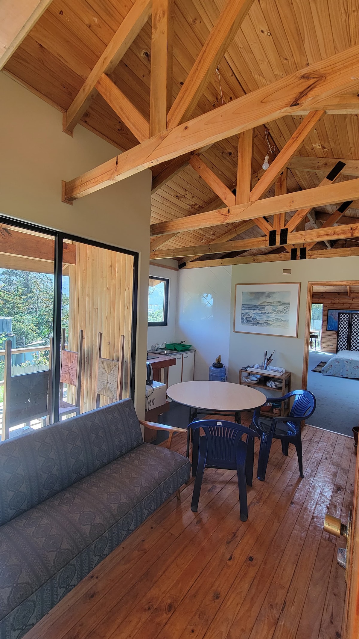 Percorrendo as estradas empoeiradas da vila de pescadores de Quintay, você encontrará “The Studio.” Situado no topo de um penhasco com vista para o Oceano Pacífico, as colinas de Curauma e a Caleta de Quintay. O estúdio independente e intimista acomoda duas pessoas com uma cozinha totalmente equipada, banheiro, cama de casal, sala de estar e área de jantar. Lençóis e toalhas são fornecidos. Você terá seu próprio deck privativo com vista para o oceano, onde poderá comer ao ar livre e assistir a um pôr do sol espetacular.