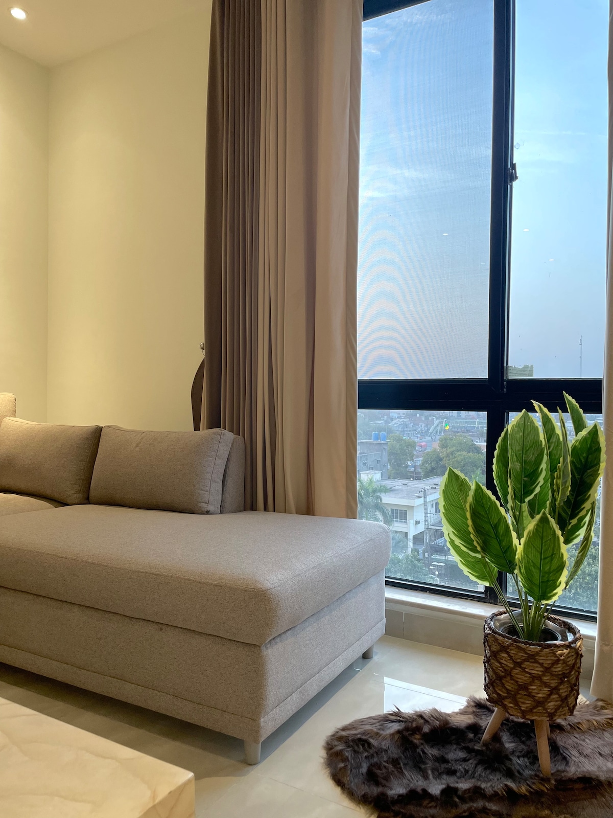 Experience designer living at Luniq, just steps from MM Alam Road the heart of Lahore’s cafes, boutiques, and nightlife. • 🛋️ Aesthetic lounge with cozy rugs, hanging lamp & full-length curtains • 🛏️ Plush king-size bed with premium bedding & city views • 55” Android Smart TV with Netflix & YouTube Premium • 🍳 Fully equipped modern kitchen with essentials • ⚡ Fast Wi-Fi for work or streaming • 🔑 Seamless self check-in for complete privacy • 🌆 Prime Gulberg location