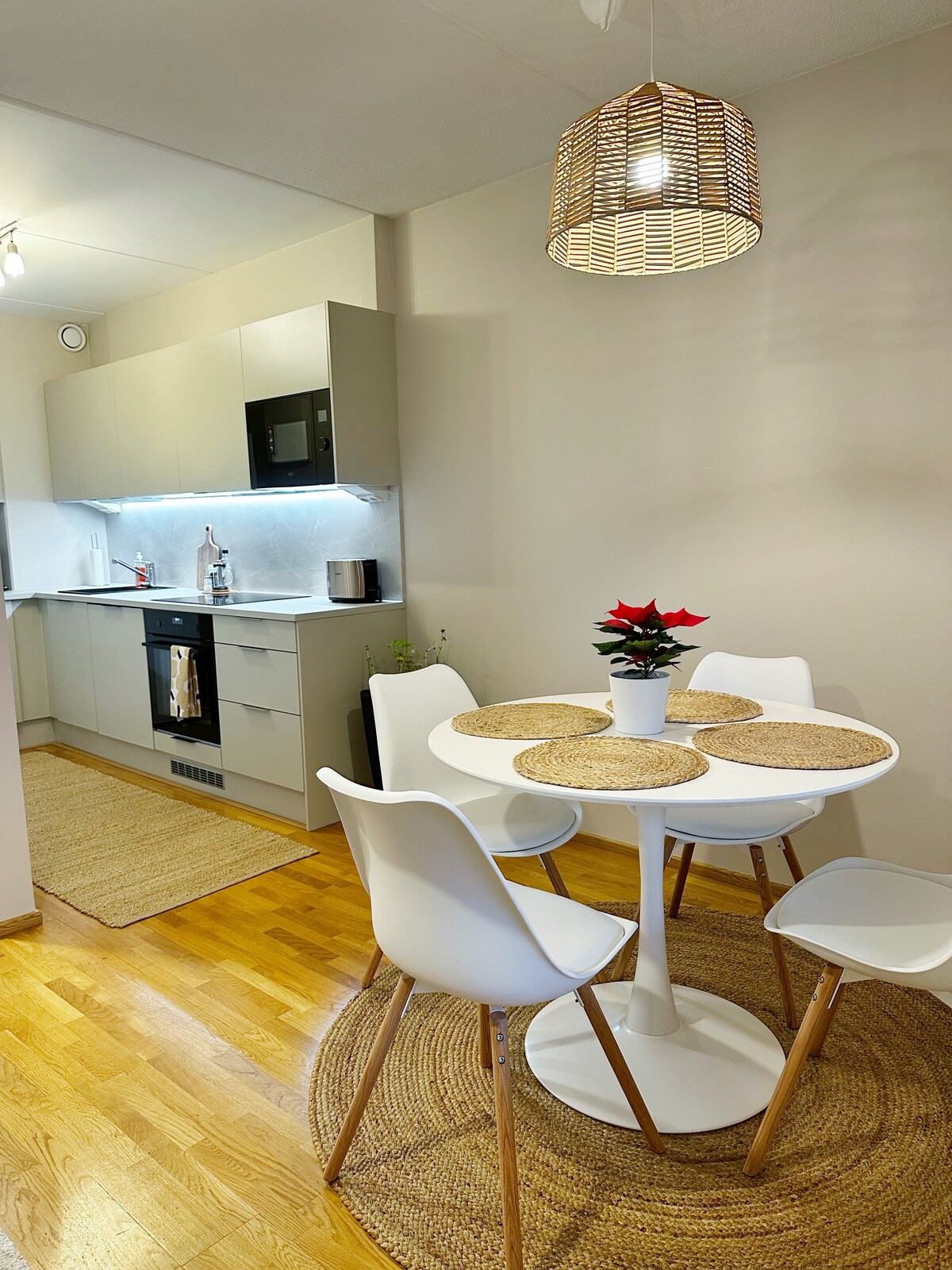 Bem-vindo a um estúdio recentemente renovado e lindamente decorado que oferece a mistura perfeita de conforto, tranquilidade e localização central. O apartamento tem uma cama de casal de 160 cm de largura numa alcova e um sofá-cama que pode ser aberto na sala de estar com 140x200 cm. A ampla varanda envidraçada de todo o apartamento adiciona conforto, que é confortável para se sentar enquanto bebe café de manhã. O apartamento fica a cerca de cinco minutos a pé da estação rodoviária e ferroviária e todos os serviços do centro da cidade estão nas proximidades.