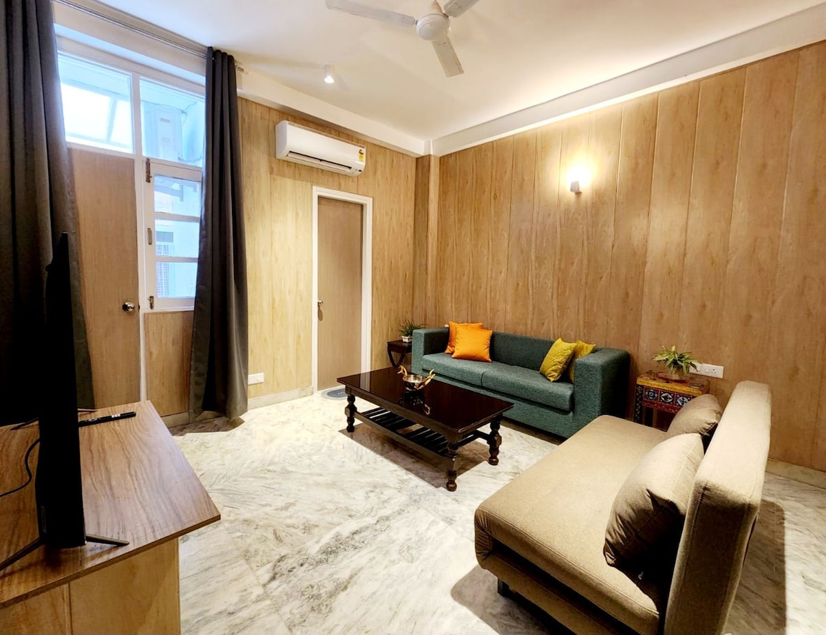 ख़्वाबघर 108-Um recanto aconchegante e um crash pad perfeito para quem procura vibrações caseiras e um lugar mobiliado. Localizado em Greater Kailash; tem tudo o que você precisa perto de sua porta; com o mercado principal - a 300 metros de distância Metro -100 metros, uma pequena varanda anexada para você se sentar e relaxar! O lugar é compatível com Uber, Zomato e outros aplicativos baseados em entrega. Outras comodidades - Gêiser, A/C, Geladeira, Micro-ondas, Distribuidor de água, Gás, Utensílios básicos, TV, Wifi. Não vemos a hora de receber você!
