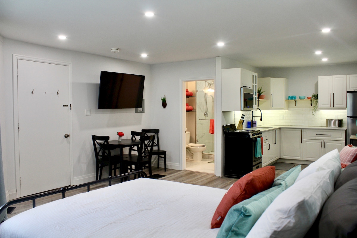 Bem-vindo a Mitchell Heights(Suite 4)! Um edifício único, rico em história. 5 suites de luxo com belas vistas para uma ravina pitoresca. Venha por conta própria ou alugue várias suítes com a família e amigos. O sofá serve para 1 adulto ou 2 crianças. Cada suíte tem uma cozinha completa, produtos de higiene pessoal, lençóis, toalhas. Fique no deck e desfrute de uma fogueira ou churrasco no seu jantar com os seus companheiros de viagem, tudo enquanto ouve os sons da natureza. 8 minutos a pé da praia de Erie Rest e a cidade fica mesmo ao fundo da estrada.