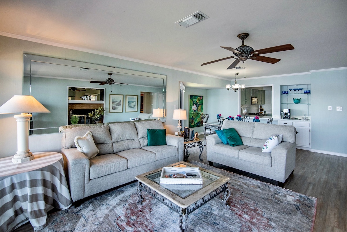 Casa nova em frente ao lago 2/2 com banheira de hidromassagem, lareira a gás propano e churrasqueira, área do deck é fechada e cercada. TVs inteligentes de 50" em todos os lugares. O acesso à sala de jogos é fornecido com o aluguel e é apenas para o uso dos hóspedes desta propriedade e do The Hideaway. A sala de jogos fica a 60 segundos a pé e está equipada com uma mesa de bilhar, shuffleboard, mesa de pingue-pongue, quadro de dardos, mesa de pôquer/jogos e TV inteligente de 50 polegadas com Wi-Fi de alta velocidade. Doca de barco compartilhada com Lookout Point. Muita diversão de jogos para toda a família!