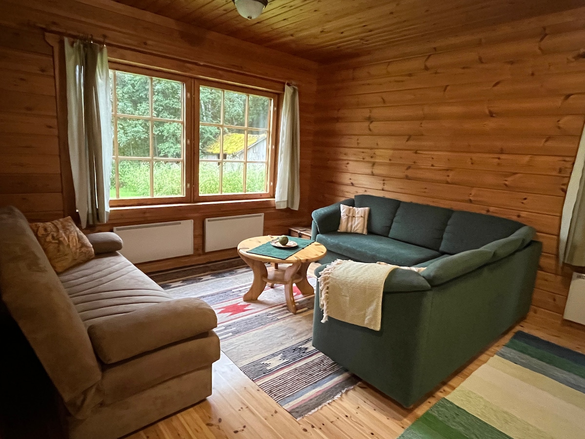 Cabana eletrificada com boa vista para o lago. Grande terraço, cozinha de verão, sauna ao ar livre, fogueira (conforme acordo), várias fogueiras, fogão a gás, grelha a gás, geladeira e armário com um pequeno compartimento de congelador. Espaço para um grupo de 6 pessoas. Barco a remo com motor elétrico disponível. Água corrente do lago. (Água potável em galão disponível na cabana.) A sauna tem chuveiros de viagem elétricos. Lago de peixes e caça de caça menor (de acordo com o contrato) possível. Serviço de lavanderia disponível para hóspedes de longa duração.