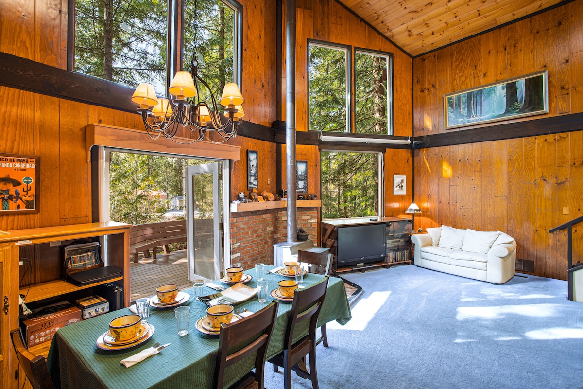 Nossa cabana iluminada e arejada é o refúgio perfeito em qualquer época do ano. Aninhado na floresta com uma vista panorâmica da montanha e sensação de casa na árvore, você pode relaxar ao redor da fogueira ou desfrutar da natureza do grande deck privativo. O acesso aos lagos Cushman e Kokanee fica a 3 km. O campo de golfe fica a menos de 1,6 km de distância. A 22,5 km de ONP/Staircase para caminhadas, fontes termais e cachoeiras. A apenas 4 milhas do Hood Canal, esta é a sua base para relaxamento e aventura. Encontre-nos no IG @huckleberryhousepnw para ver mais.