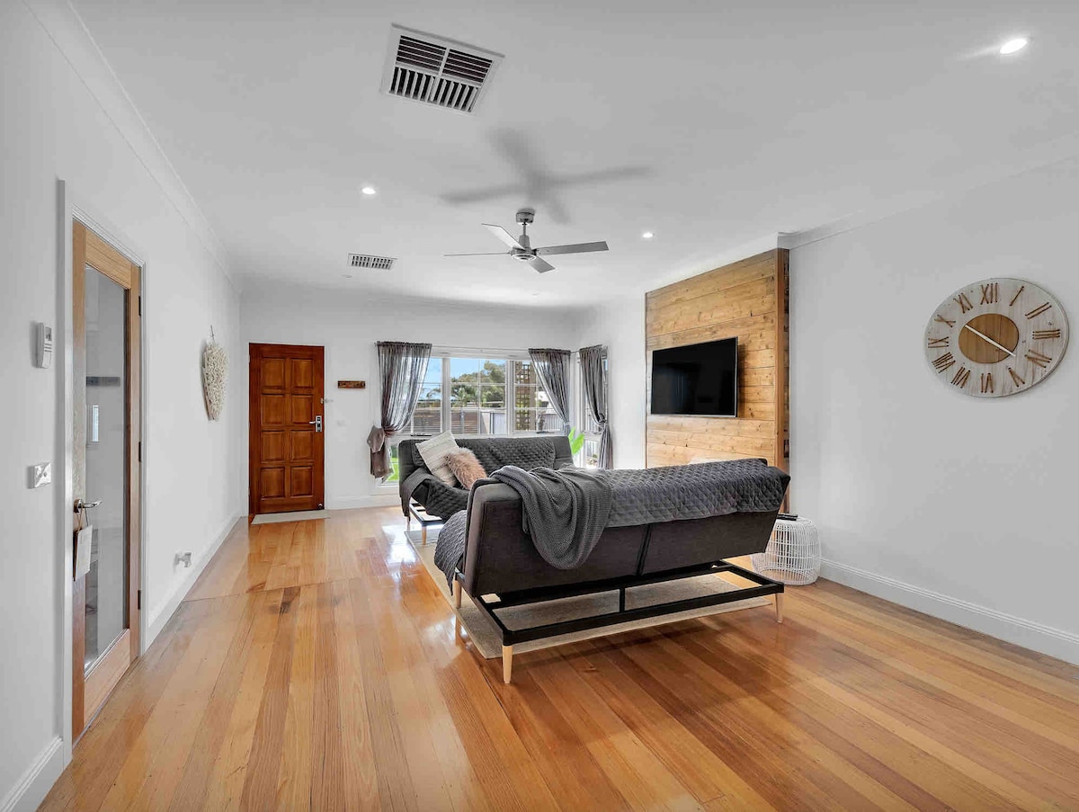 O Family Guy é uma espaçosa casa de férias familiar no centro de Mulwala, perfeita para famílias, grupos de golfe e convidados de casamento. Com capacidade para 10 hóspedes em 5 quartos, este retiro em estilo resort dispõe de uma piscina aquecida a energia solar, uma grande área de entretenimento ao ar livre e um trampolim no solo. Desfrute de diversão durante todo o ano na sala de jogos com mesa de bilhar, dardos e ténis de mesa. A poucos minutos do Lago Mulwala, campos de golfe, clubes, locais para casamentos e restaurantes.