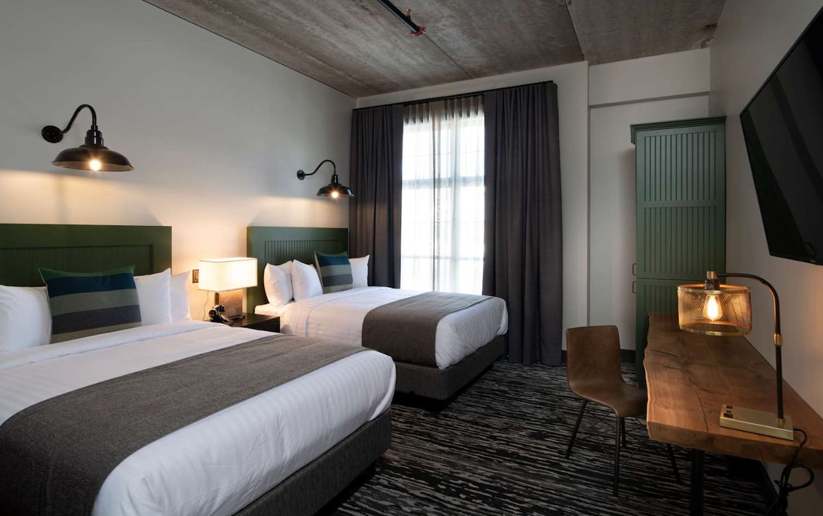 Step into history at Cantilever Hotel, a boutique escape inspired by Ranier’s colorful Prohibition-era past, complete with its own distillery and tasting room. This King Room features warm interiors, a plush king-size bed, and thoughtful details throughout. Ideal for solo adventurers or couples exploring northern Minnesota.