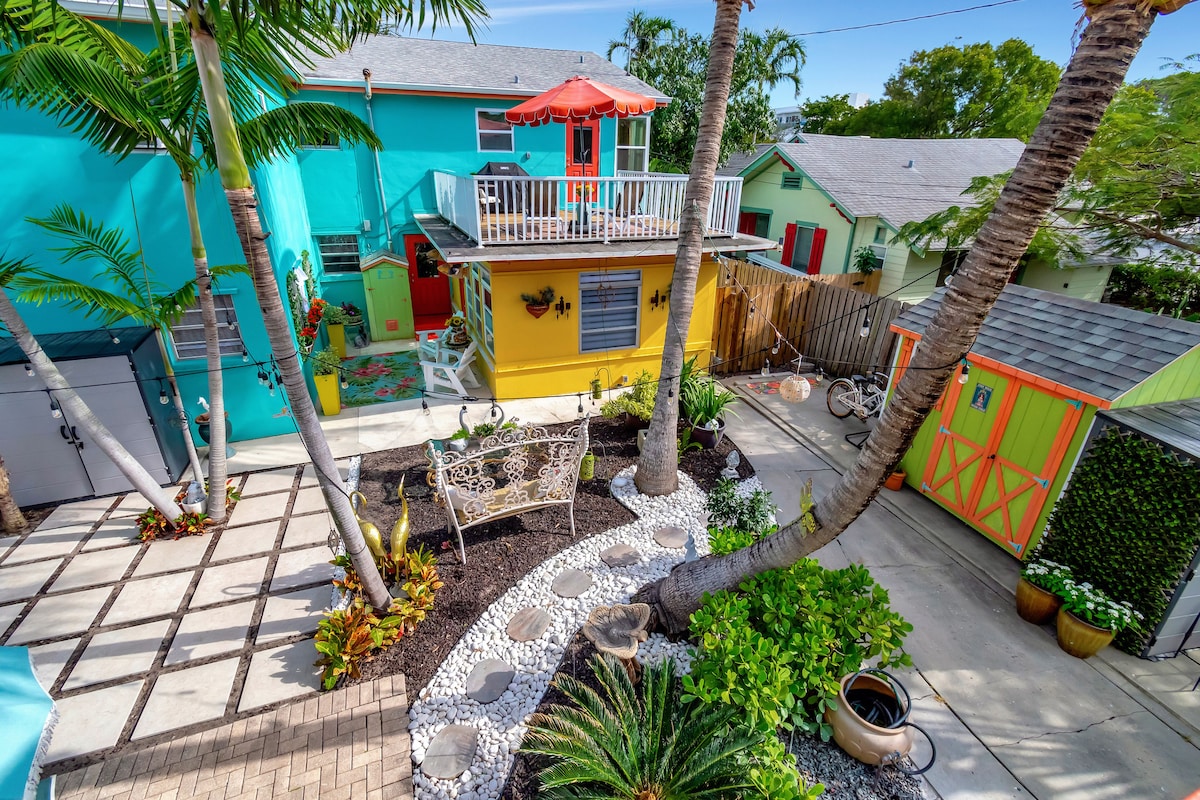 Bem-vindo ao "Royal Poinciana" no Distrito Histórico de Lake Worth Beach! Nossa bela casa de campo totalmente remodelada dos anos 1920 fica a 100 metros da Intracoastal Waterway, a 1,6 km da praia de Lake Worth e a poucos quarteirões do centro da cidade. Você terá uma cozinha totalmente abastecida com eletrodomésticos topo de linha, um grande quintal privativo com chuveiro ao ar livre e lareira, lavanderia na unidade, Wi-Fi e Roku TV. Inclui 2 bicicletas de praia, cadeiras de praia, toalhas e guarda-sol. Apaixone-se pelo nosso oásis de tirar o fôlego!