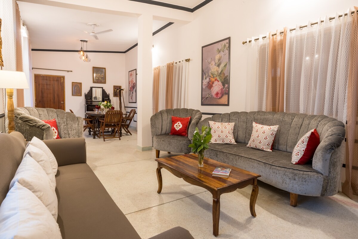 Refugie-se numa moradia com jardim serena em Paonta Sahib, onde a natureza se une ao conforto. Esta casa privada e espaçosa está rodeada por relvados exuberantes e vegetação, proporcionando um ambiente calmo e revigorante. Ideal para famílias, casais e estadias prolongadas, a moradia promete tranquilidade, privacidade e uma experiência verdadeiramente acolhedora perto da natureza.