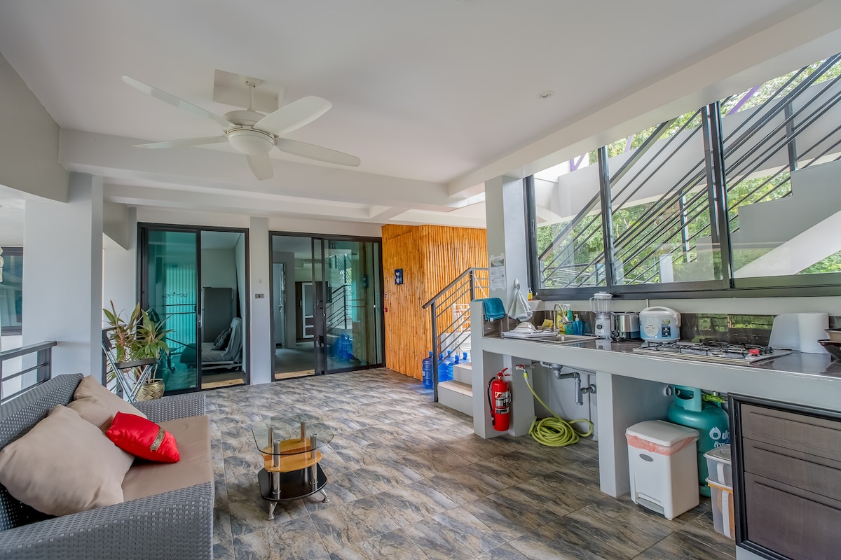 A villa pode acomodar até 6 pessoas em 3 quartos + sala de estar com cozinha. Cada quarto tem uma casa de banho e uma casa de banho privativa, ar condicionado. WiFi, TV. Piscina privada com jacuzzi e vista para o mar. Há um lugar de estacionamento para um carro ou bicicleta. A 5 minutos a pé do mar. Centro comercial Makro, 7/11 e mini Big C.