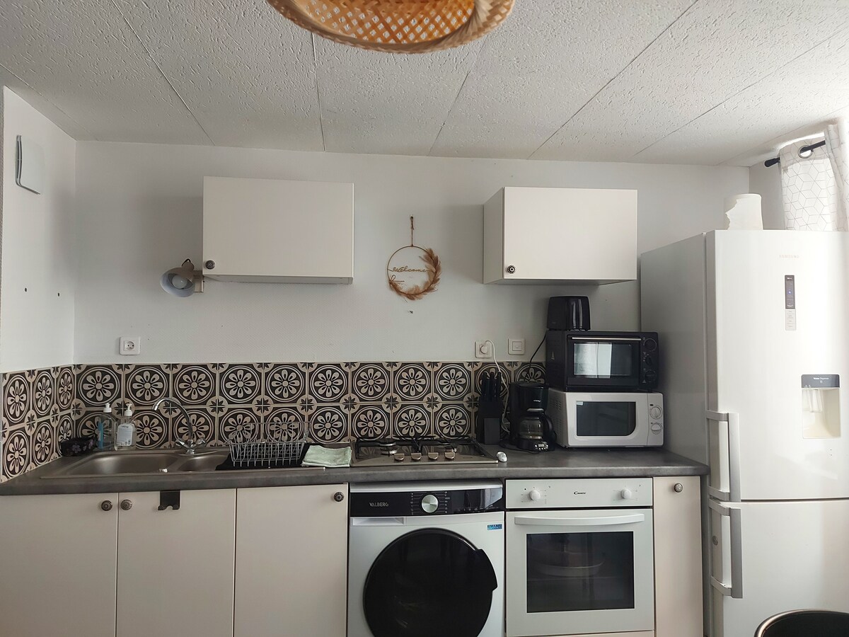 Para trabalho, férias, sozinho(a), em casal ou com amigos, venha relaxar neste alojamento elegante e tranquilo. Este apartamento foi totalmente reformado. Inclui um quarto, um banheiro com vaso sanitário, uma sala de estar com televisão e uma cozinha equipada. Está idealmente localizado, a poucos passos da estação de trem e do centro da cidade. Wi-Fi grátis Chegada autônoma possível graças ao cofre eletrônico