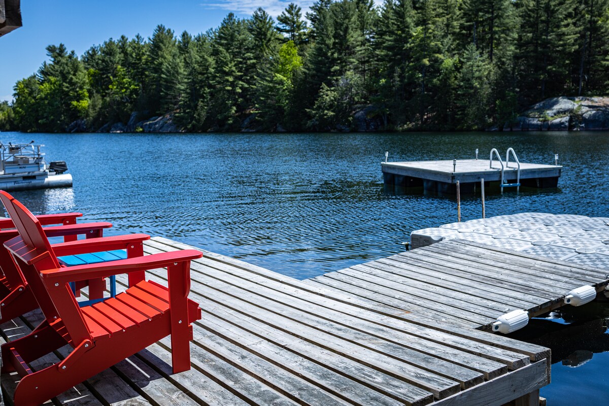 Desfrute de um pedaço da história ao ficar nesta histórica cabana de madeira reconstruída de 1820 no Lago Mississippi, localizada a 30 minutos de Ottawa. Esta deslumbrante propriedade à beira-mar está localizada num terreno privado. Desfrute desta casa de campo de 4 estações lindamente trabalhada que pode dormir 8. Caminhe no seu cais privado e desfrute de um belo pôr do sol sobre o lago. Relaxe na varanda ou no terraço do segundo andar e crie memórias duradouras com a família e amigos.