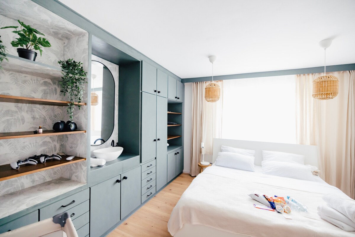 As estadias prolongadas também são agora possíveis! O apartamento está localizado no distrito de Obersendling Paragem de autocarro do lado de fora da porta A 5 minutos do U-Bahn Forstenrieder Allee vai diretamente para Marienplatz 33 metros quadrados de largura com 3,75m de altura de quarto Cama de casal king size com colchão completo Cortinas opacas Revestimento de carvalho de alta qualidade Wi-Fi de alta velocidade Smart TV Utensílios de cozinha e micro-ondas Cafeteira (almofadas) Estacionamento NOVA máquina de lavar roupa + secadora de roupa na casa