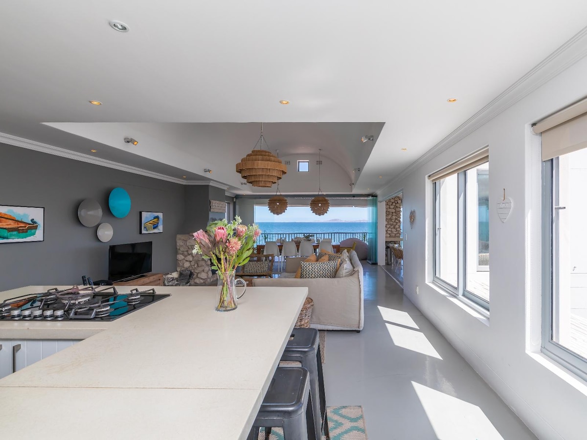 Moradia à beira-mar com INVERSOR. Distância a pé para 3 restaurantes à beira-mar, Kokomo, Friday Island e Wunderbar. Langebaan Waterfront nas proximidades. PET FRIENDLY & INFINITY / PARTY TYPE POOL ON THE BEACH. Vista para o terraço, uma área de grelai/churrasqueira protegida do vento do Sudeste e vistas ininterruptas das atividades de Kite, Surf e SUP do centro desportivo do Cape Sports Centre. Na porta da deslumbrante Lagoa de Langebaan, a uma distância de carro da Baía de Sharks, uma baía idílica de kiting ao estilo da ilha.