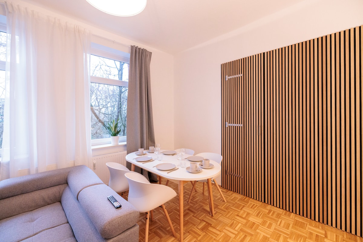 Moderno e acolhedor apartamento de 1 quarto perto do aeroporto em Hanover/Langenhagen. Estúdio recém-renovado e totalmente equipado com varanda, cozinha e casa de banho. 2 sofás-cama confortáveis. Aluguer estadia mínima diária/semanal: 2 dias Distâncias: Aeroporto de Hannover/Langenhagen 4,5 km (10 minutos de carro) Langenhagen centro 750m (3 minutos a pé) Hanover estação principal 8 km (18 minutos de carro)
